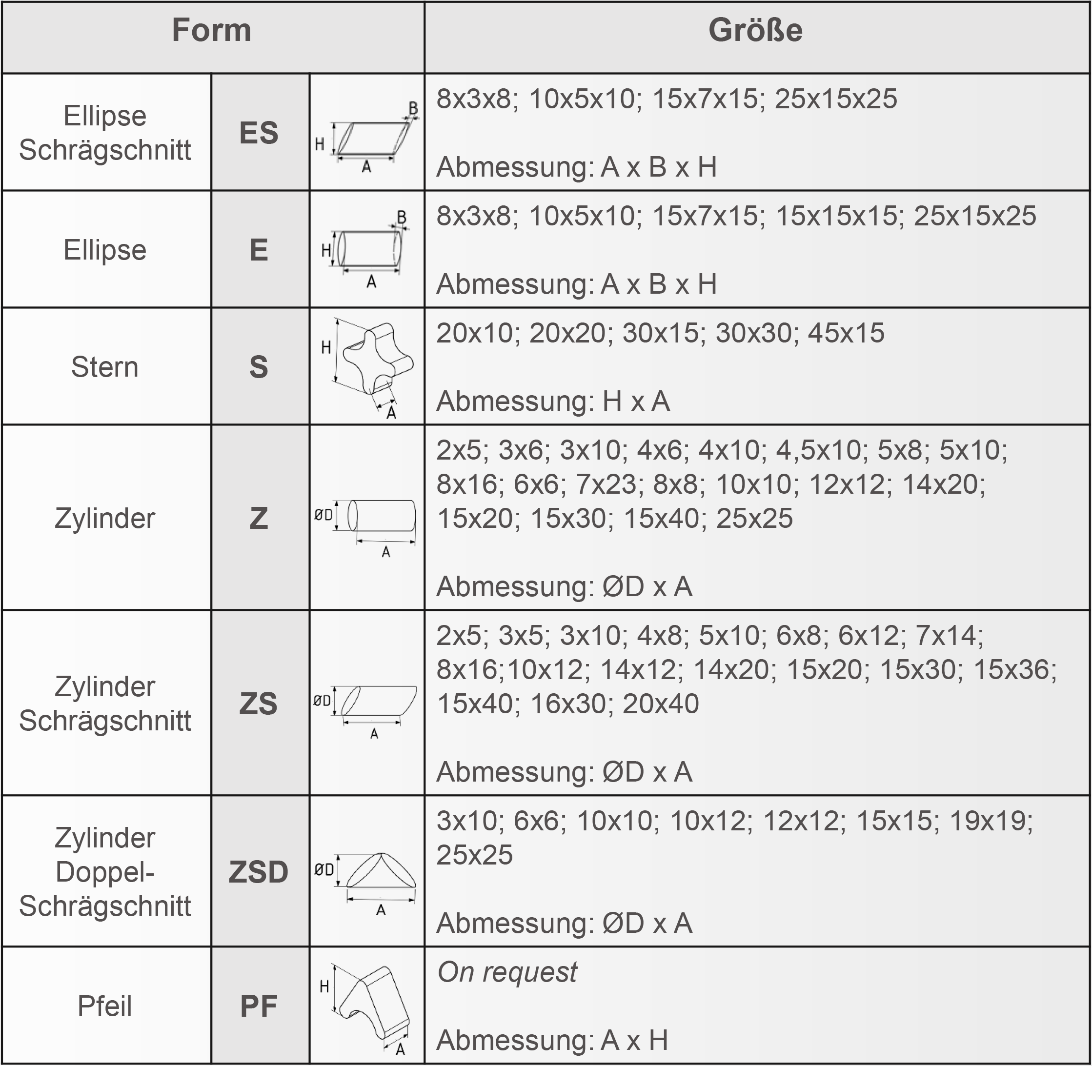 Je nach Schleifkörperform und Größe sind mehrere Schleifstufen lieferbar.