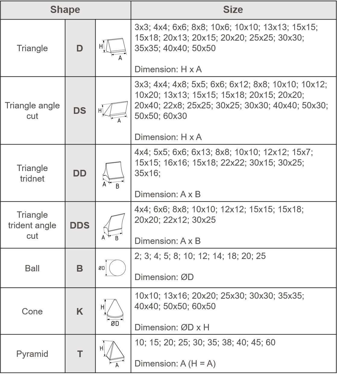 All abrasive medias are provided with an individual article code in order to clearly identify them.